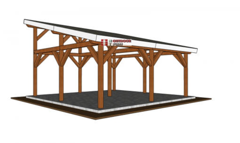 The diy wood plans are detailed and come with step by step 3d diagrams, instructions and a full cut & shopping list. Custom 18' x 22' cedar gable pavilion shown with closed gable, no deck, 8/12 roof pitch, 16 post trim, 8x8 cedar wrapped posts, custom post height (10') metal roof supplied by customer, and electrical package. Architecture backyard outside living timber frame pavilion shed plans timber frame homes house styles woodworking projects plans design. Eastern white pine timber frame. This unit is great for sheltering one or two vehicles, along with any outdoor equipment you may need to protect from the elements.