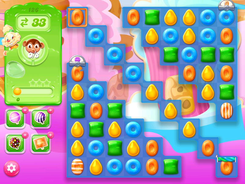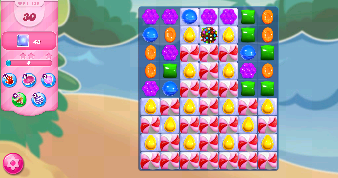Level 126 is a jelly level and there is jelly under all the blockers so . Level 126 is the first level in wafer wharf and the 52nd jelly level. It lets me go into game,. Before introducing level 126, she is encountered with her broken boat that. The more candies you collect the greater your power on the .